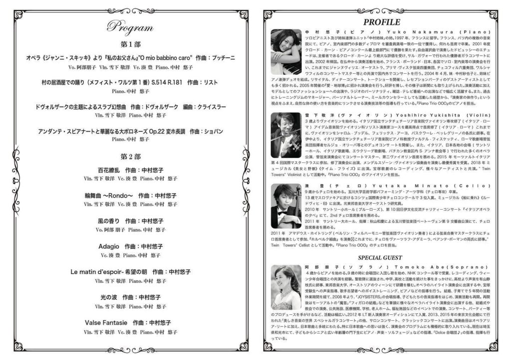 中村悠子先生が参画する弦とピアノトリオ「Piano Trio OOO」によるコンサート