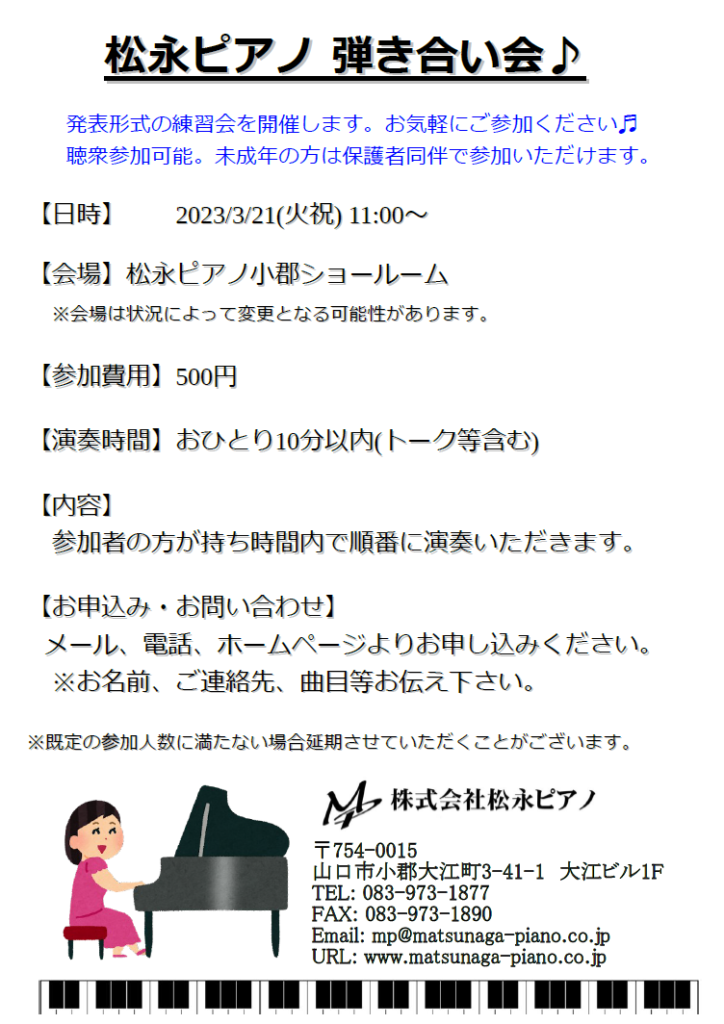 昨年に引き続き、弾き合い会を開催させていただきます♪